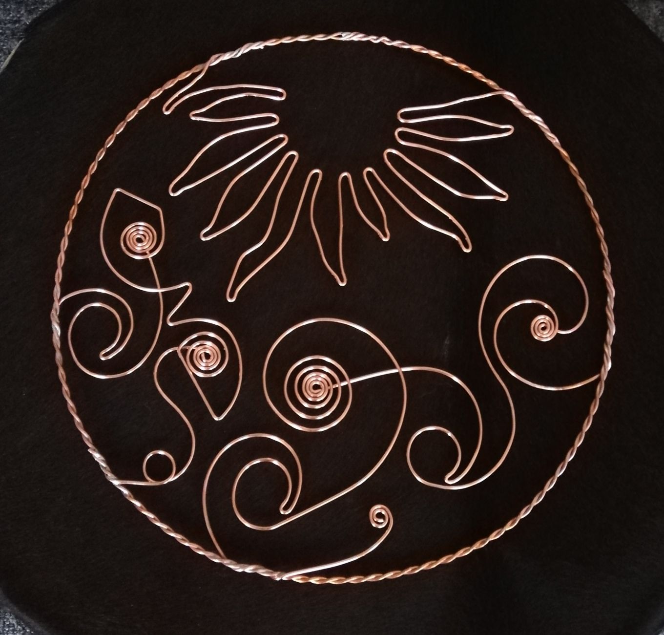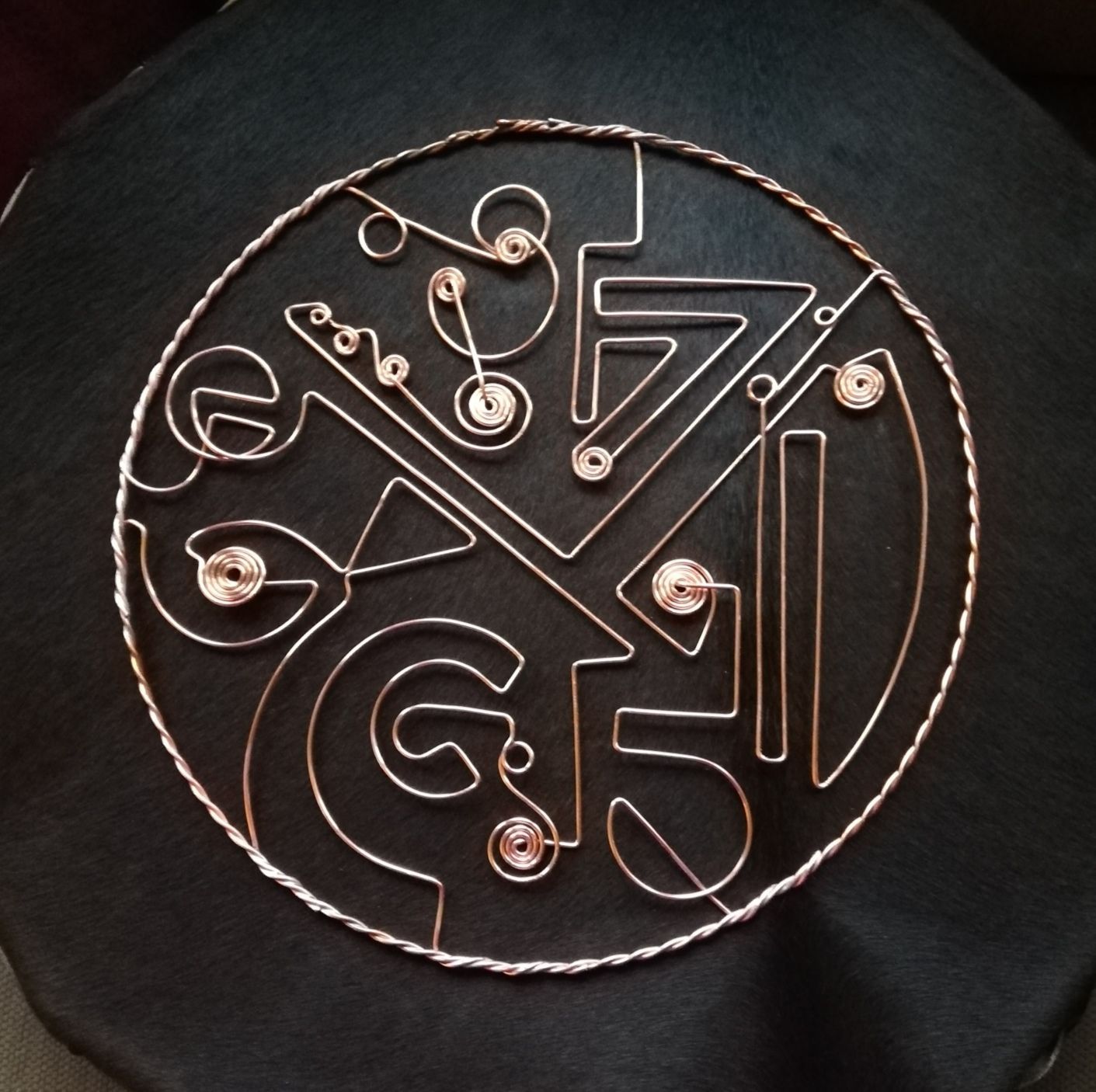 Tot ik, na het kijken van een kort filmpje over de tegen gsm en straling beschermende werking van koper, ineens een heel helder beeld voor me zag. Koperen cirkels met daarin tekens en symbolen, ‘Lichttaal’